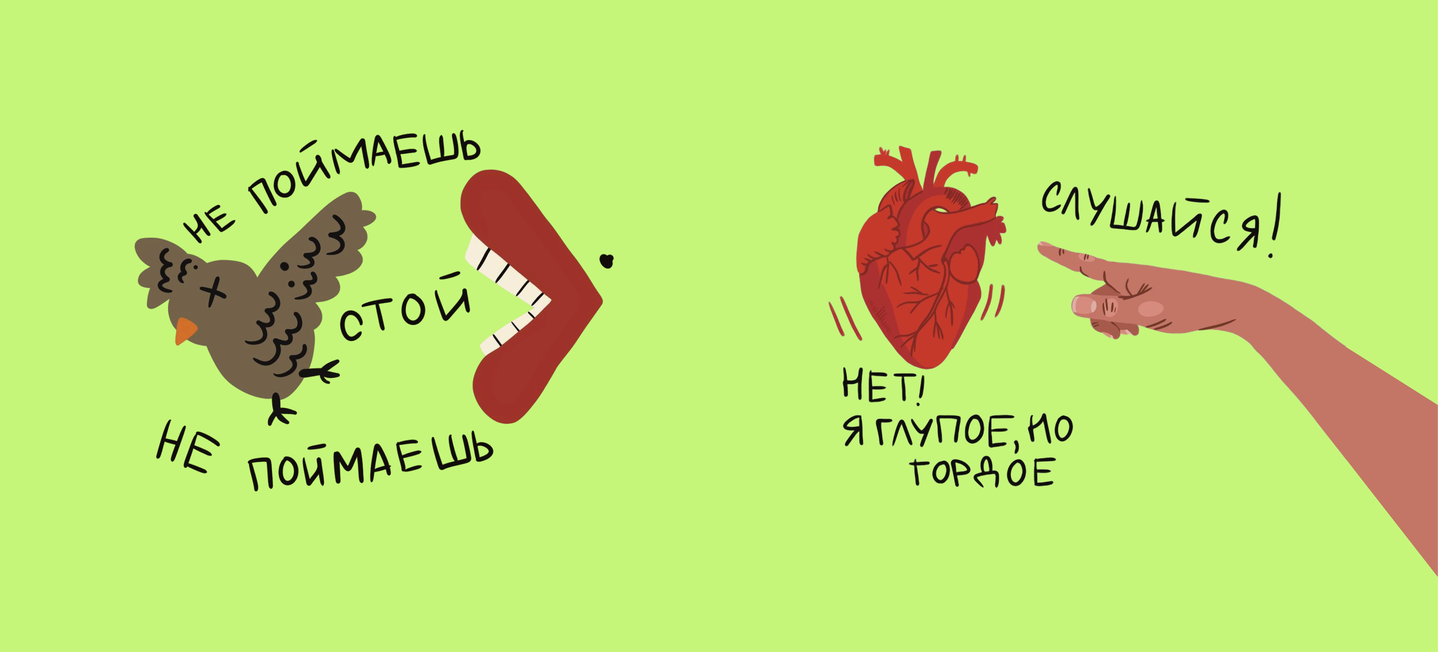 Именно это сделала Ксения, художник и иллюстратор, в своей рубрике «Пословицы и поговорки».
